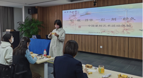阳春三月,万象更新。2023年国际劳动妇女节即将来临,为丰富女性职工文化生活,共庆女性节日,财务公司工会组织本部女职工体验了亲手篆刻石印活动。