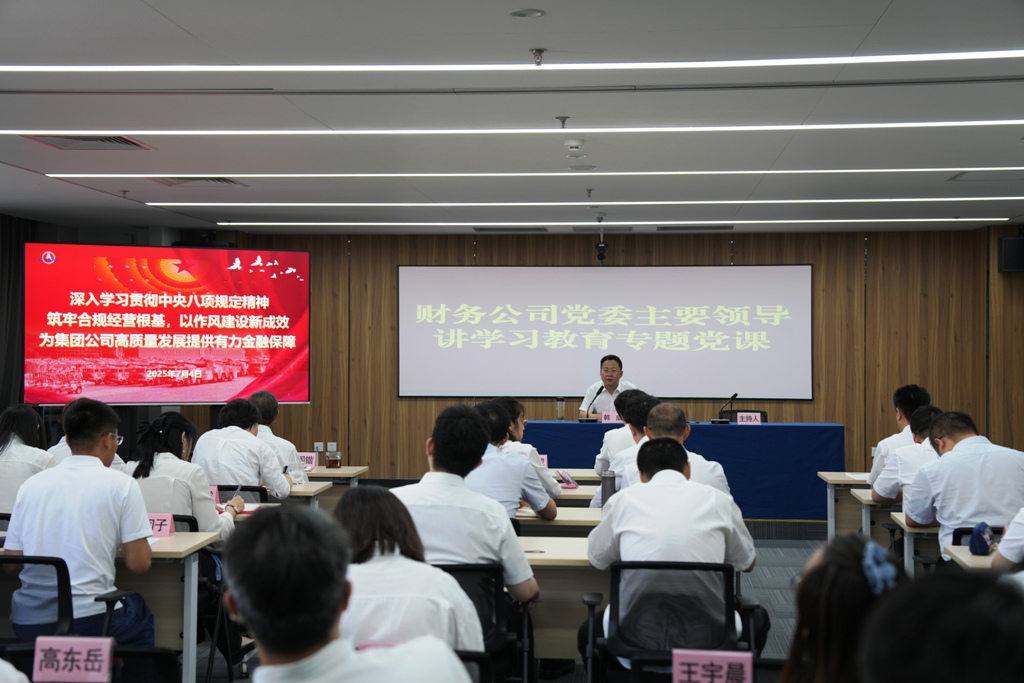 党委副书记、总经理韩成作了题为《深入学习贯彻中央八项规定精神,筑牢合规经营根基,以作风建设新成效为集团公司高质量发展提供有力金融保障》的专题党课,从深入贯彻落实中央八项规定精神的时代价值切入,深刻阐明加强作风建设的重要意义,引导公司党员、干部充分认识领会中央八项规定精神的核心要义和实践要求,不断强化纪律合规意识,实干担当、奋力作为。