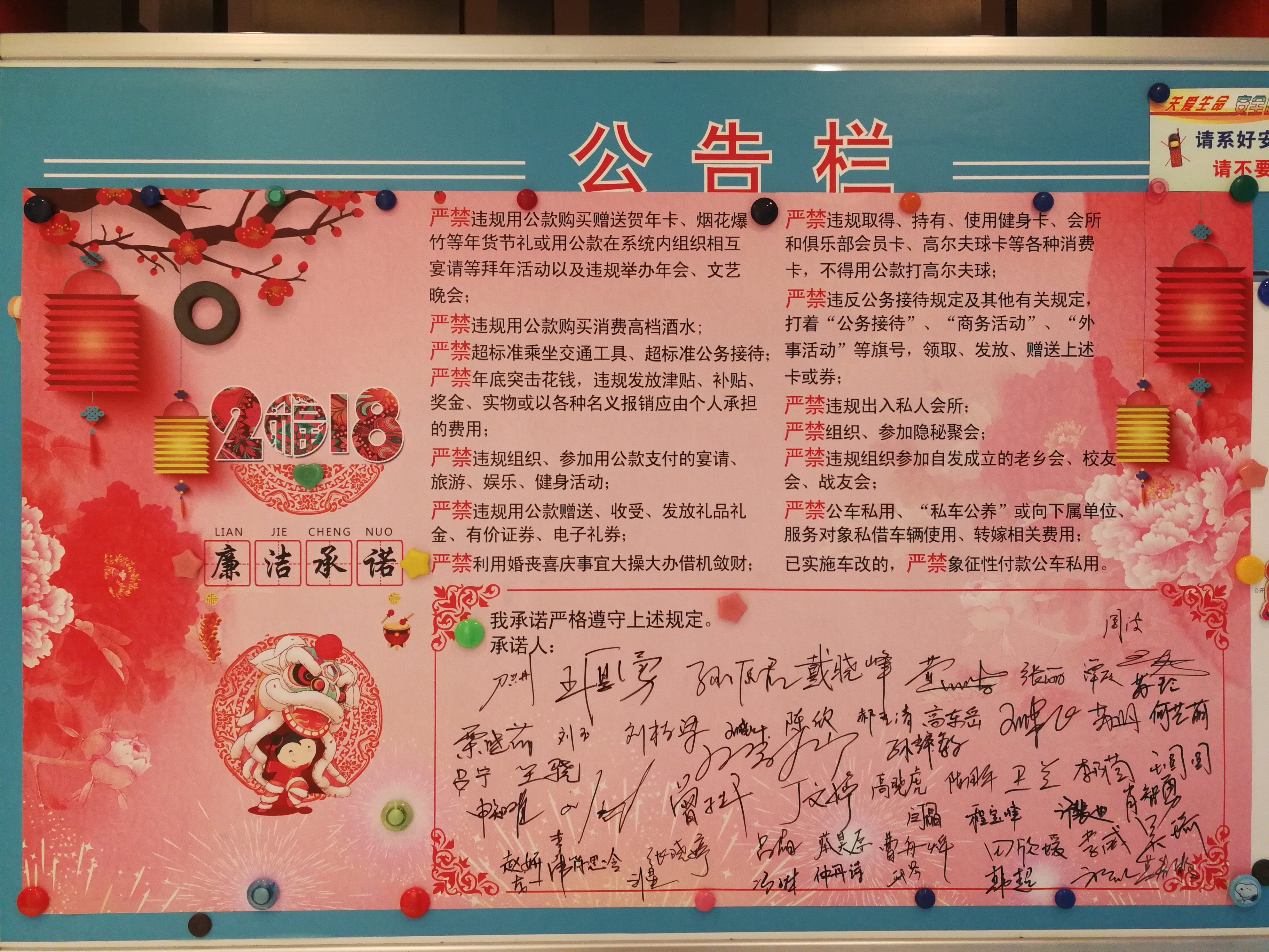 2018年春节将至,为营造风清气正的“两节”氛围,将中央八项规定精神落到实处,确保节俭文明廉洁过节,加强党风廉政建设工作从严开展,公司开展了一系列学习宣传活动。