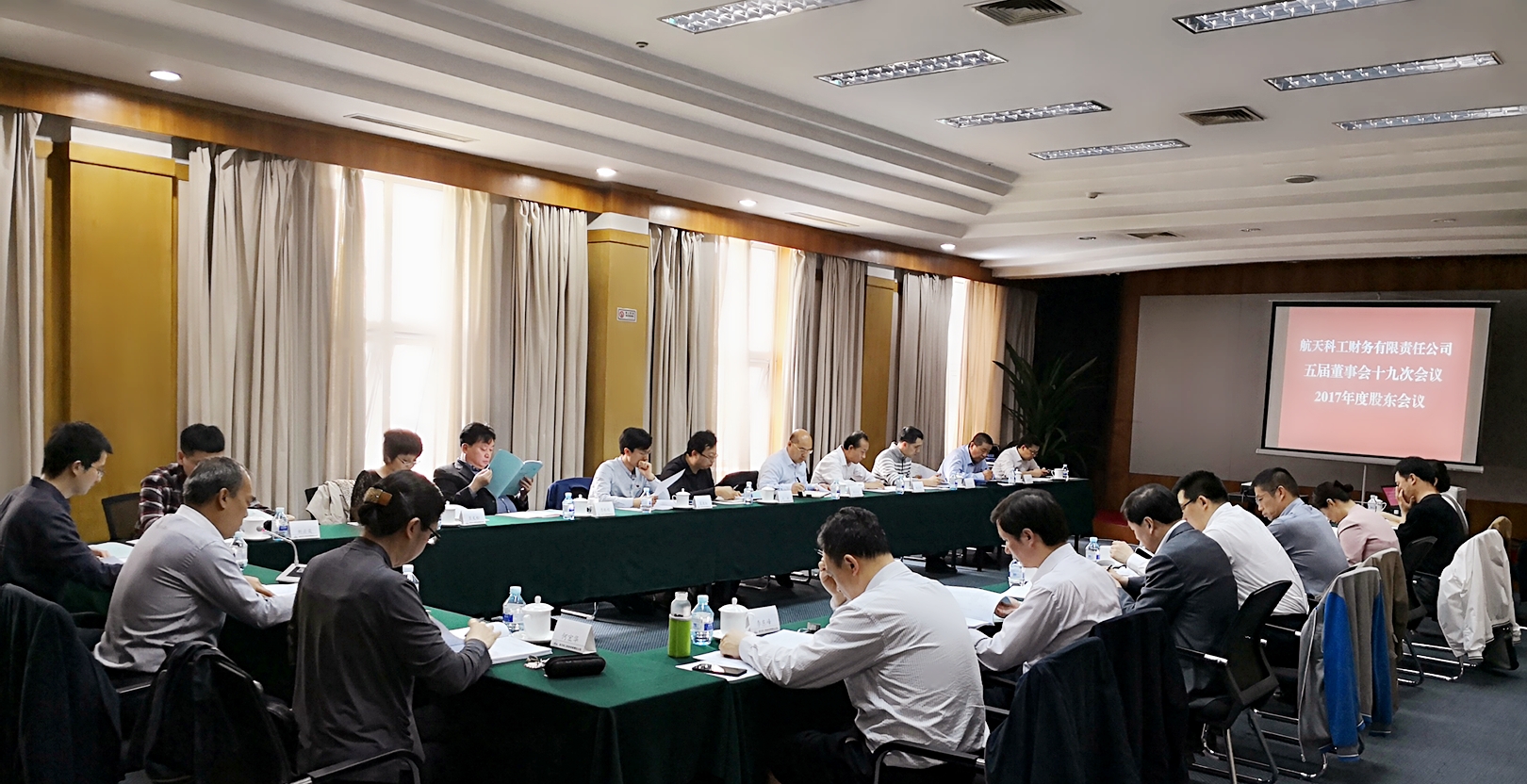 2018年4月19日,航天科工财务公司五届十九次董事会和2017年度股东会在京召开,财务公司董事、监事、股东代表及高级管理人员参加或列席了会议,北京银监局主监管员周晓俊等两位领导应邀出席了会议。会议由公司代董事长王厚勇主持。