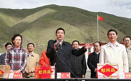 8月22日,国务院国资委主任王勇、副主任黄丹华带领相关厅局负责人赴青海玉树,在青海省省长骆惠宁、副省长王令浚的陪同下,看望并慰问参与玉树灾后重建工作的中国建筑、中国中铁、中国铁建、中国水电等四家中央企业的干部员工。