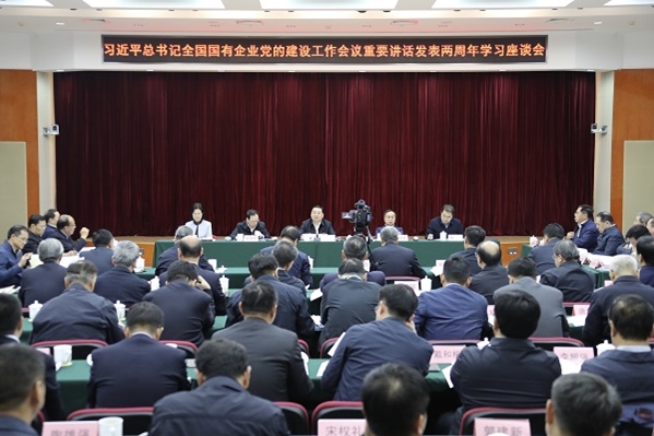 10月10日,在习近平总书记全国国有企业党的建设工作会议重要讲话发表两周年之际,国务院国资委党委召开学习座谈会,深入学习贯彻习近平新时代中国特色社会主义思想和党的十九大精神,组织国资委和中央企业党员干部重温习近平总书记在全国国企党建会上的重要讲话,认真总结两年来贯彻落实的进展成效,不断开创中央企业改革发展和党的建设新局面。国资委党委书记郝鹏出席学习座谈会并讲话。中央纪委国家监委驻国资委纪检监察组组长、国资委党委委员陈超英主持座谈会。国资委党委委员出席会议。中央纪委国家监委、中央组织部、中央党的建设工作领导小组秘书组有关部门负责同志应邀参加会议。