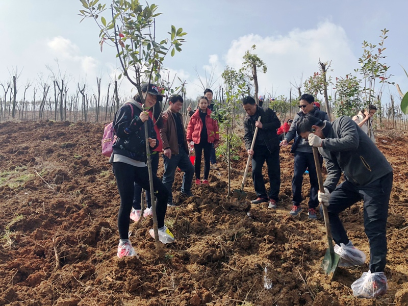 天公作美,告别了前几天的阴雨天气。今天的天气特别适合植树。上午10点,经过近1个小时车程来到植树基地,大家顾不上休息直奔在植树活动现场,听完专业人员的讲解,大家便迫不及待的拿起铁锹,扶好树苗,精心的完成着从挖坑、放树、填土、到最后踩实的每一个步骤,干劲十足;经过大家辛勤地劳动,一棵棵小树苗都已经扎根沃土,在风中轻轻摇曳,尽现勃勃生机,原先的黄土地变成了一片小树林。