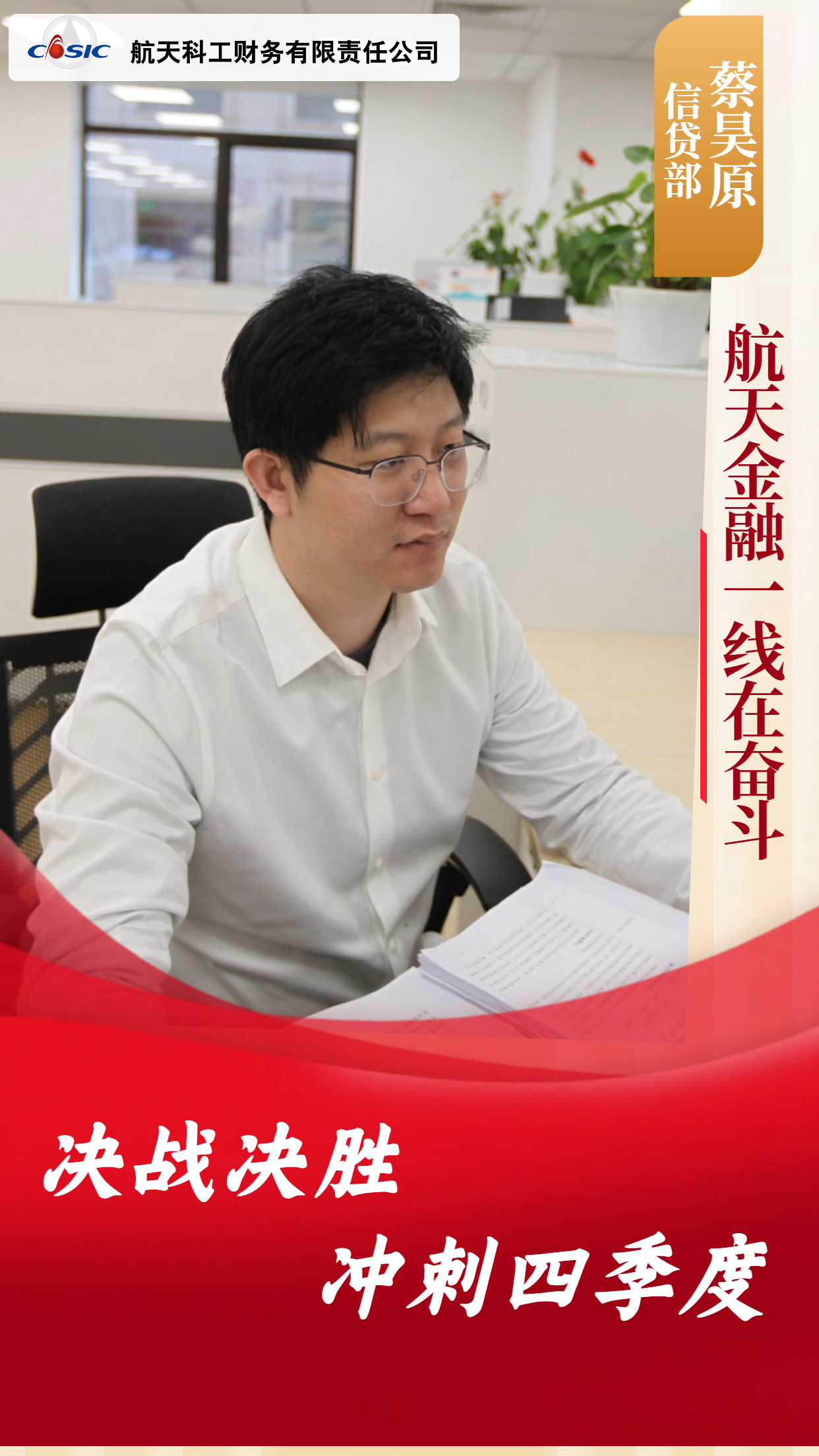蔡昊原同志作为一名财务公司信贷部普通客户经理,位于服务集团成员单位的第一线,日常工作中从本职岗位职责出发,锚定强军首责,聚力聚焦主责主业,做强做专金融服务,努力做到产融结合,实现以融促产;作为团支部书记,以身作则,带领财务公司青年员工在多项攻关工作中贡献青春力量,积极发扬青年财金人才有理想、敢担当、能吃苦、肯奋斗的精神风貌。
